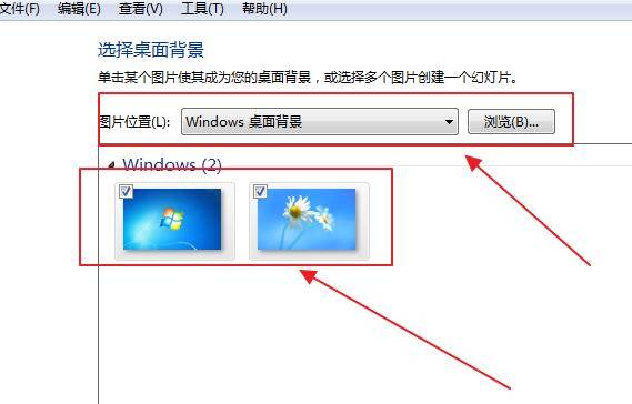 3、在此处改变桌面背景,选择喜欢的图片作为桌面背景。