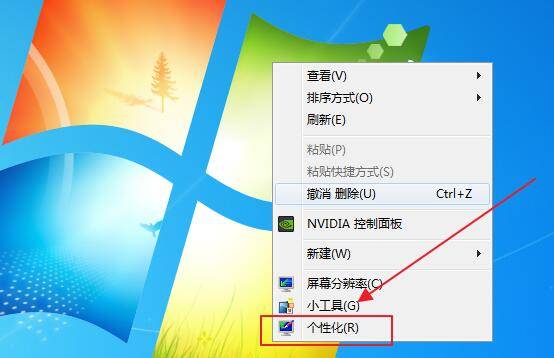 1、右键点击桌面任意空白处,选择“个性化”。