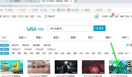 3、打开搜索结果页面,然后点击360°全景VR视频作品的封面。