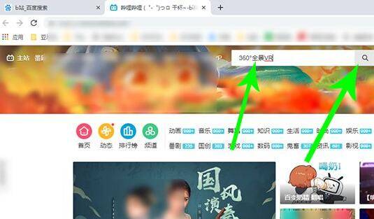 2、打开b站首页,在搜索框中输入360°全景VR,点击搜索。