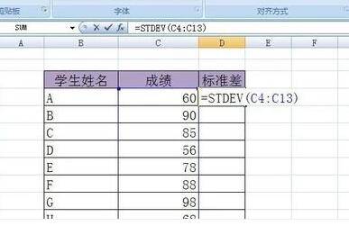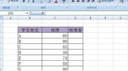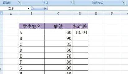 6、最后可看到单元格中出现了一个数值,数字越小则说明成绩差异越小。