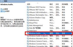 3、接着,在右侧找到Windows Audio服务并双击打开。
