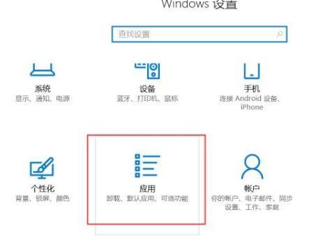 2、选择“应用”功能选项。