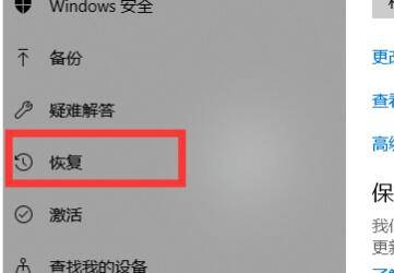 3、在新弹出来的页面内,在左边菜单栏点击恢复。