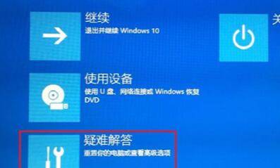 5、电脑会自动关闭并重启,重新开机进入Windows RE(恢复环境)界面,点击疑难解答。