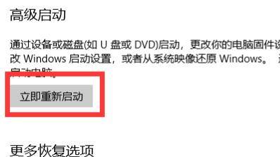 4、在左边的页面内,找到高级启动,并在高级启动处点击立即重新启动。