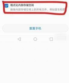 5、根据自身需要决定是否要勾选“格式化内部存储空间”选项,然后再点击“重置手机”即可。