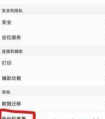3、进入高级设置页面后,找到并点击“备份和重置”。