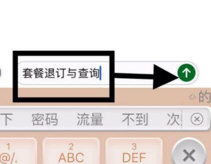 4、在打开的页面中,编辑短信套餐退订与查询并点击发送。