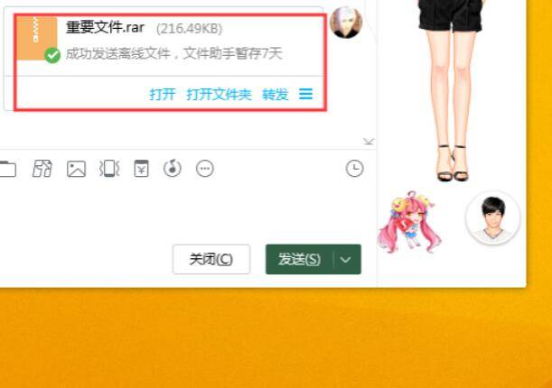 5、将电脑上的QQ传输对象打开,将该文件拖拽到聊天窗口点击发送按钮。