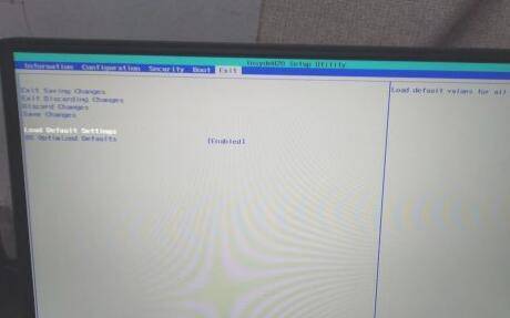 3、需要在“Exlt”菜单中选择“Load Default Settings”,即可完成恢复出厂设置的操作。