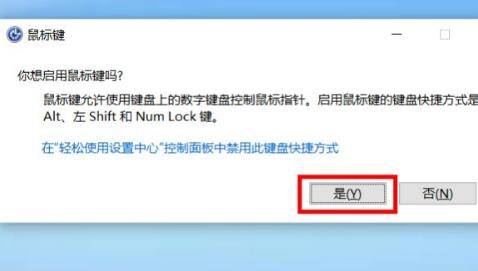 演示机型:华为MateBook X 系统版本:win10按快捷键“Alt+Shift+Num Lock”,弹出启用鼠标键咨询框,由于没鼠标无法点击“是”,所接按回车键。
