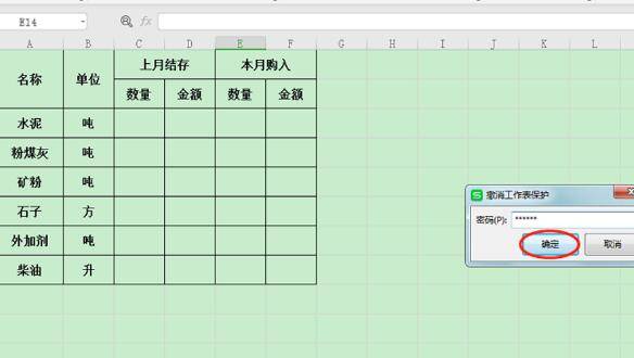 2、在弹出的对话框内输入密码后,点击确定,即可撤销对该工作表的保护。
