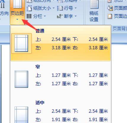 选择顶部菜单栏选择页面布局选项,选择下拉选项,把页边距的上下值调小一点。