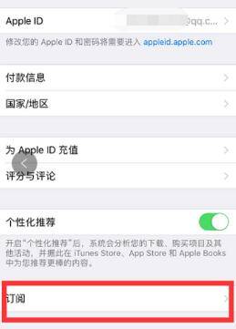 6、然后,在账户设置主页下,找到倒数第二行的“订阅”,点击进入订阅。