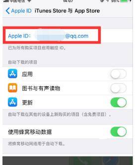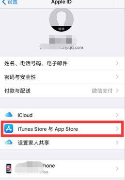 4、然后,在iTunes Store与App Store主页下,点击第一行自己的Apple ID。