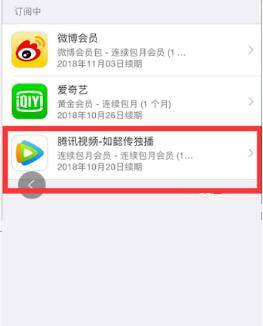 7、然后,在订阅主页下可以看到所有通过Apple ID续费订阅项目,找到并点击“腾讯视频”。