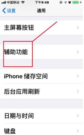 点击“辅助功能”,进入“辅助功能”设置界面。
