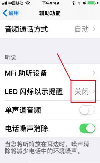 点击“LED闪烁提醒”,如果显示关闭,点击“勾选”开启该功能即可。