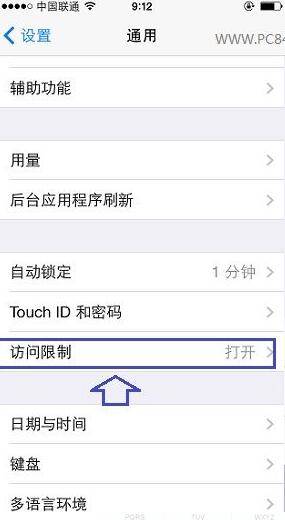 进入通用设置后,选择进入“访问限制”。