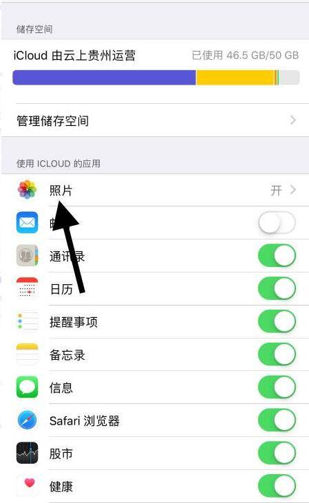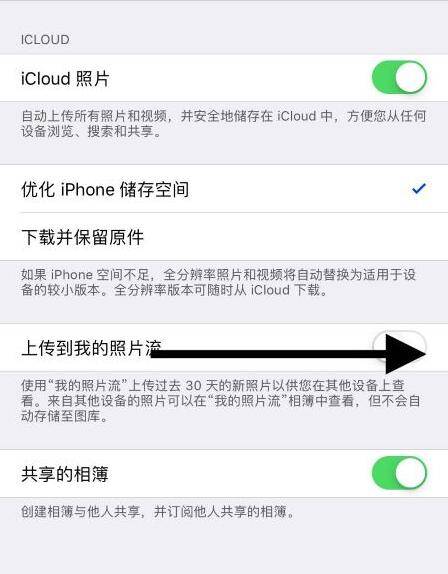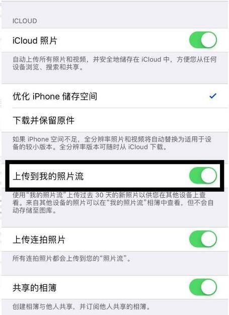 接着点击开启上传到我的照片流开关。