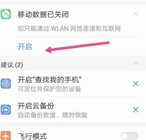 2、进入设置界面后,点击开启移动数据。
