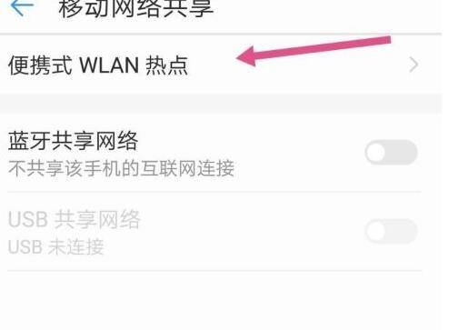 5、进入移动网络共享后,点击便携式WLAN热点进入。
