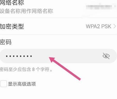 7、进入配置WLAN热点后,输入8位数以上的密码,然后点击保存,这个密码只设置一次,以后再开启热点时,不用再设置。