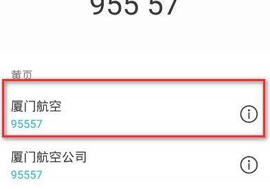 2、输入95557之后会出现厦门航空的字样,选择厦门航空进行点击拨打,等到拨打成功后进行人工服务。