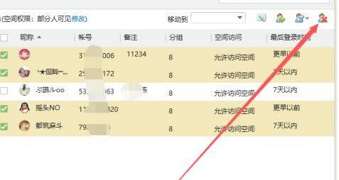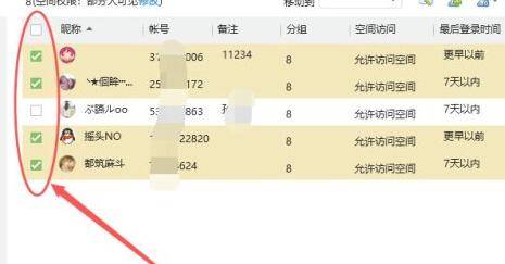 4、在右侧好友列表显示8号分组所有的好友,勾选想要删除的好友昵称左侧的方框。
