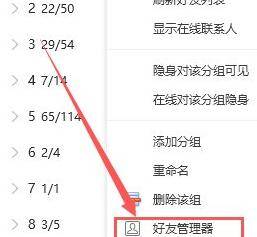 2、接着在联系人界面,鼠标右键点击好友分类的右侧空白位置,选择右键弹出框中的好友管理器选项。