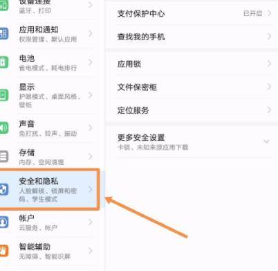 2、在设置选项点击“安全和隐私”。