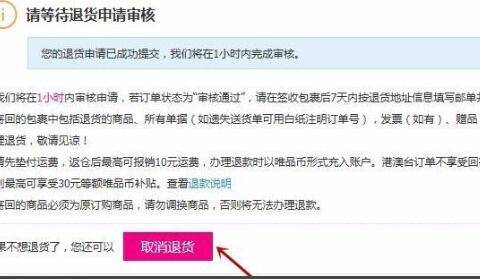 3、提交退货申请成功后,系统会自动提示退货与退款的信息,如需修改可点击“取消退货”。