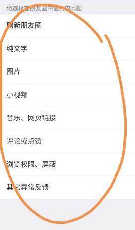 5、进入朋友圈页面,根据自己遇到的问题选择相应的选项。