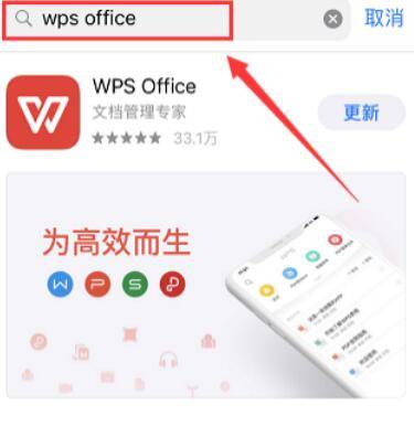 3、在搜索框输入WPS Office,然后点击确定,搜到软件之后点击后面的按钮下载软件。