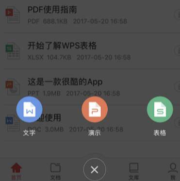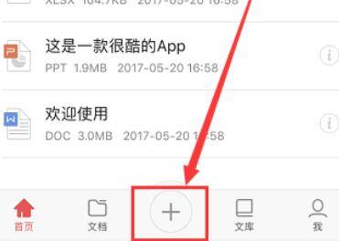 4、下载好之后点开WPS Office,点击页面下方中间的加号按钮。