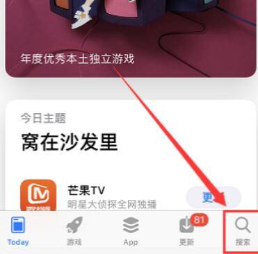 2、点击App Store首页右下角的搜索按钮。