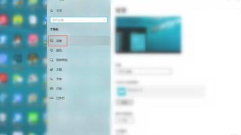 进入到个性化功能界面,在左侧功能栏目中找到背景,点击背景。