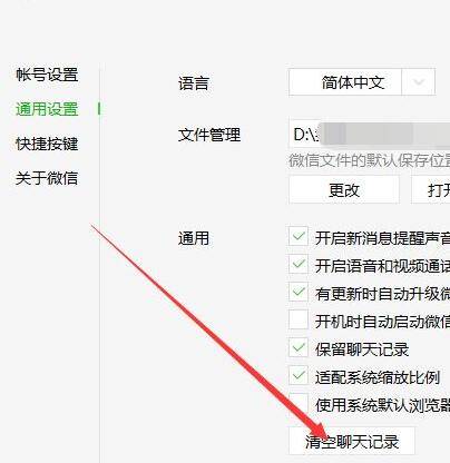 4、在通用设置中,看到最下方有个清空聊天记录的按钮,点击它。