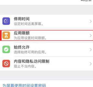 然后点击“屏幕使用时间”中的“应用限额”进行下一步操作。