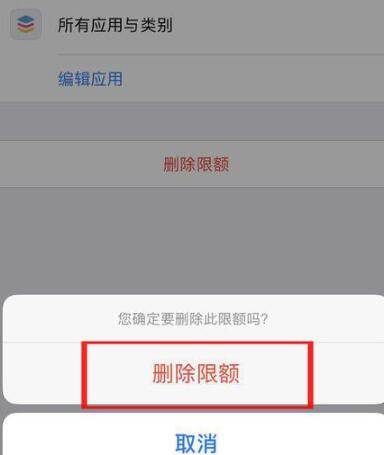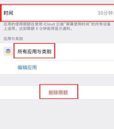 在“所有应用与类别”中就可以看到程序被限制了使用时间,然后点击“删除限额”。
