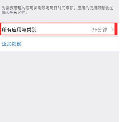 在“应用限额”页面点击“所有应用与类别”进入。
