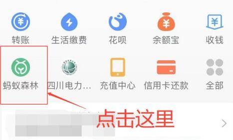 2、进入支付宝主页面后点击蚂蚁森林。