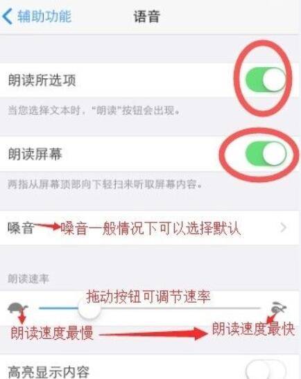 继上步打开按钮之后,根据自身情况进行设置“嗓音”、“朗读速率”等内容。