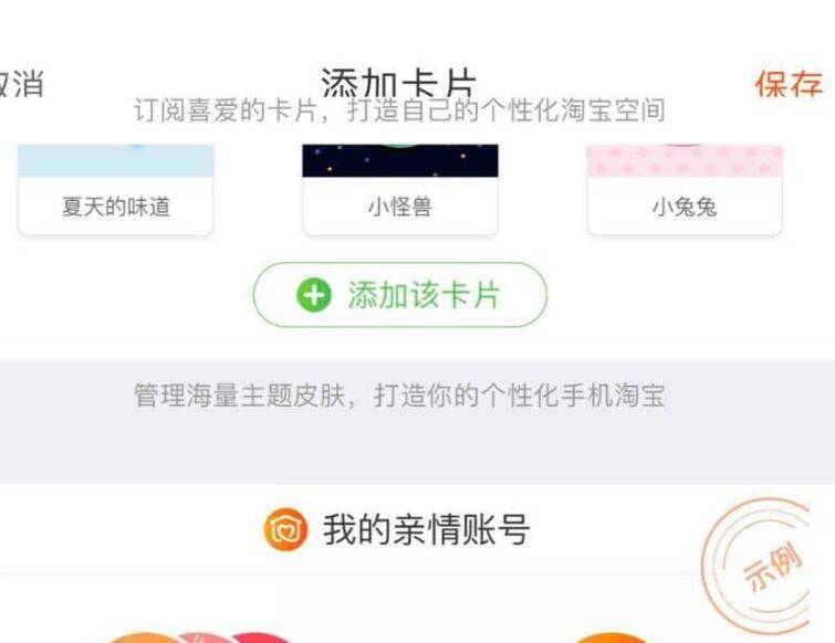 3、在添加卡片页面中就可以找到亲情账号的卡片,点击下方的“添加该卡片”即可添加亲情账号功能。