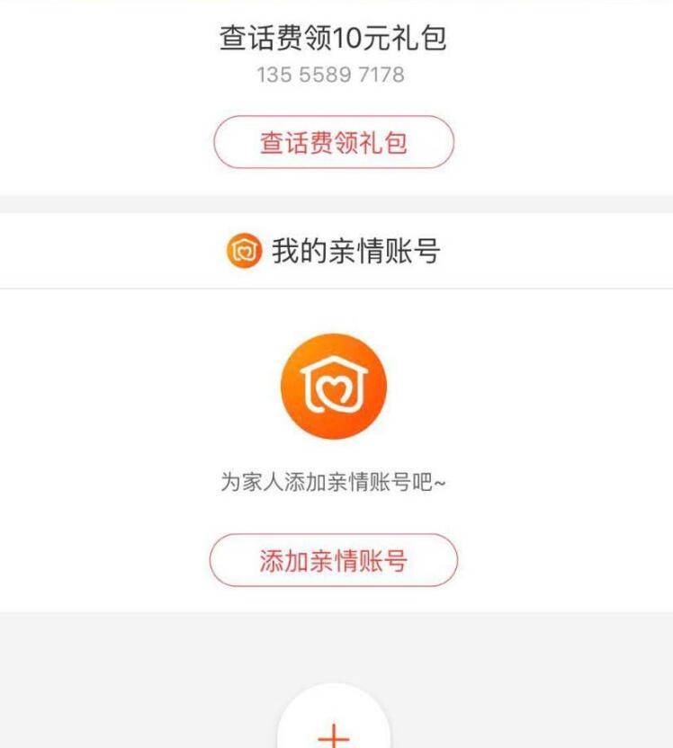 5、在我的页面中,找到新添加的亲情卡片,直接点击“添加亲情账号”,即可进入到亲情账号的添加页面。