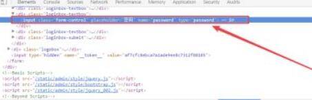 在下方的审查元素页面,可以看到一行标记了颜色的代码,其中的type=password就是表示密码不可见。