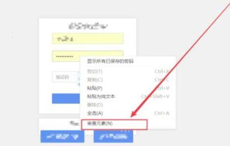 虽然浏览器没有提供查看密码的权限,但密码已经输入,在密码输入框中鼠标右击,点击审查元素。