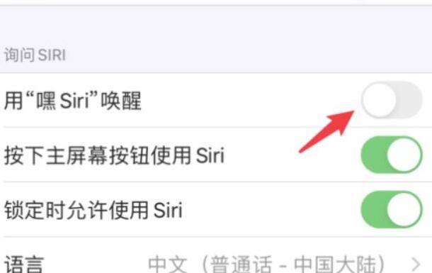 进入后,选择用嘿Siri唤醒的选项开关。