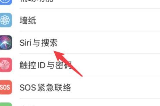 在设置界面,点击Siri与搜索的选项。